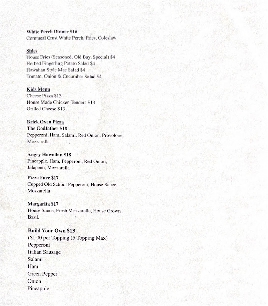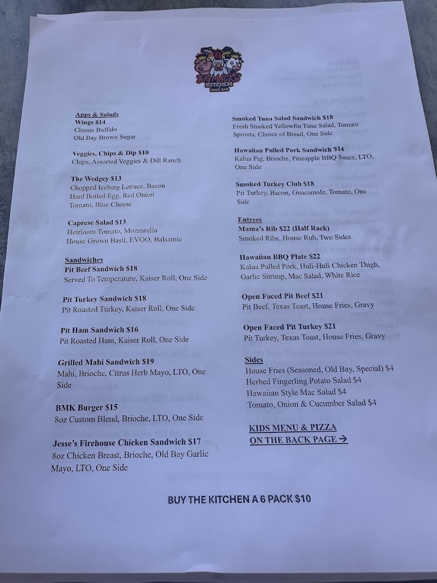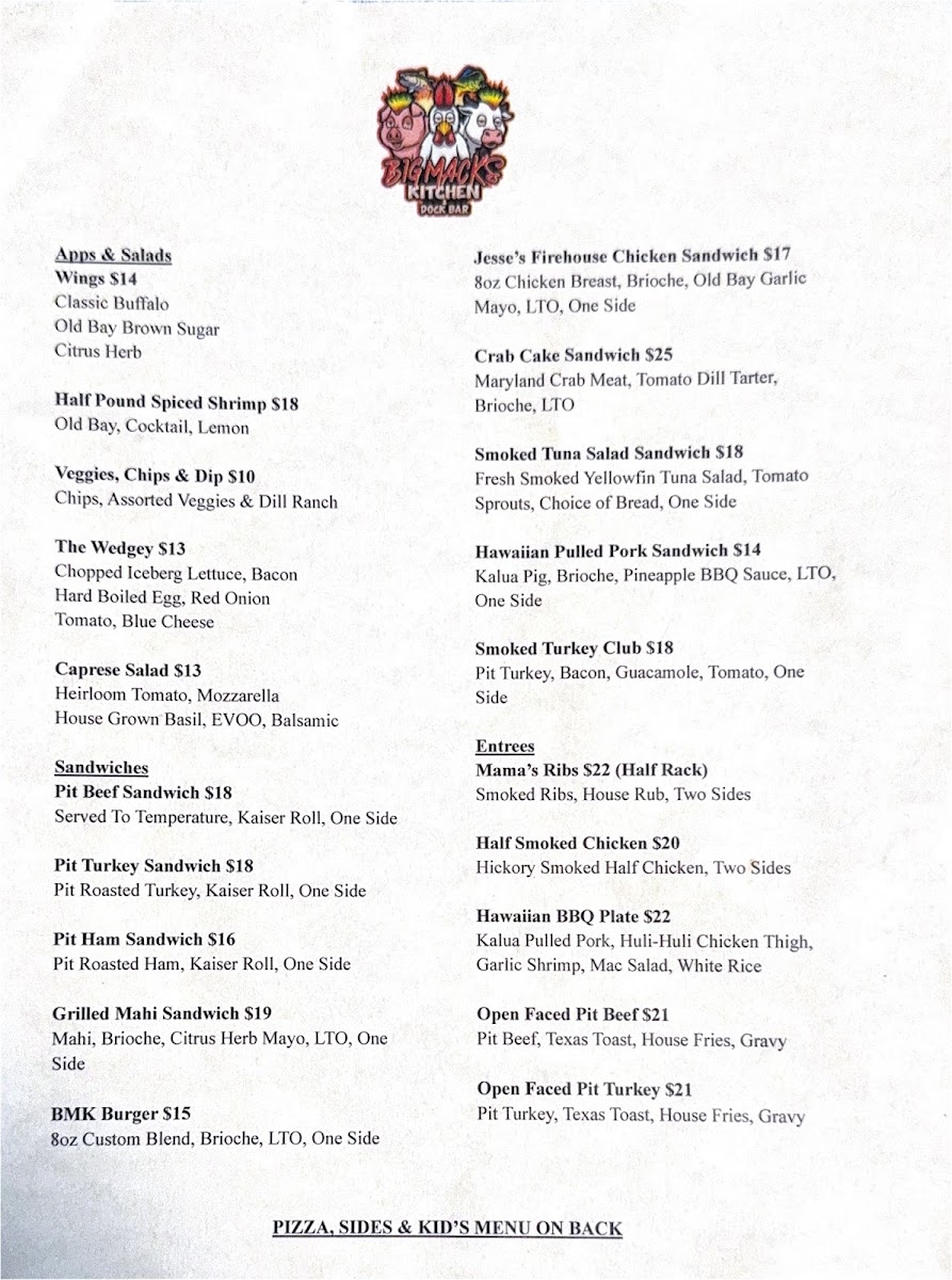 Big Mack’s Kitchen & Dock Bar Menu